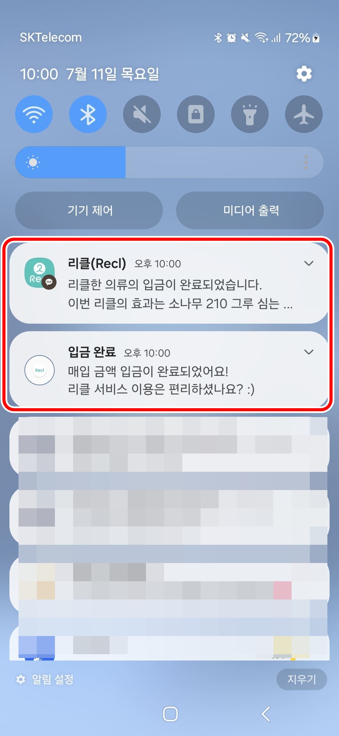리클알림과 카톡에도 입금이 되었다고 메세지가 왔습니다.