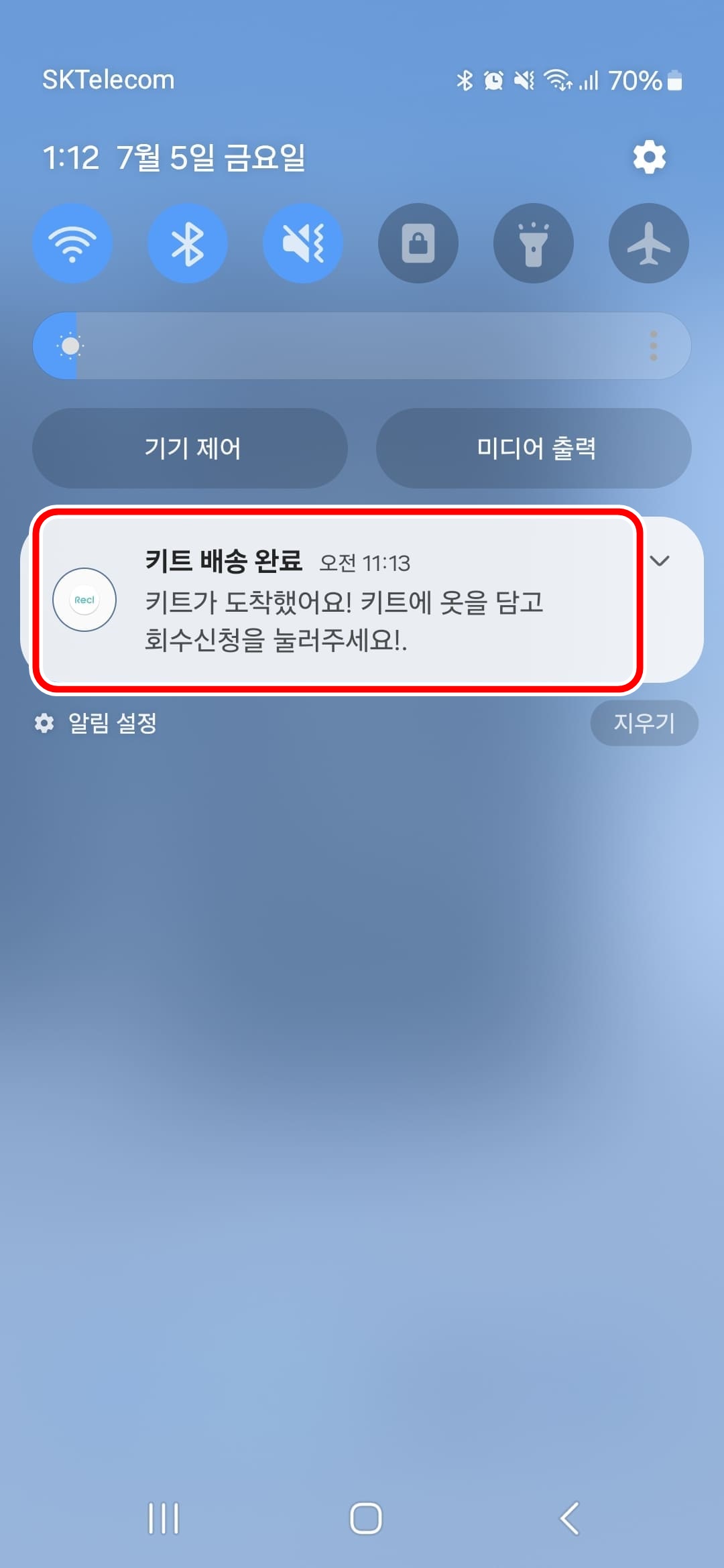 휴대폰 리클 알림에서도 봉투가 배송되었다는 알림이 뜹니다.