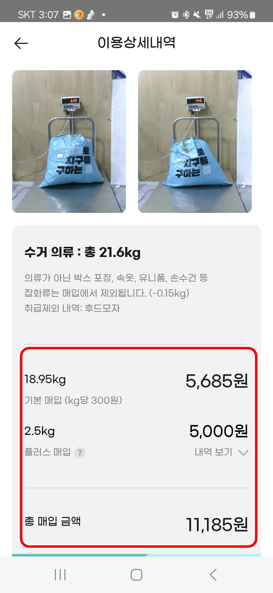 제가 보낸 옷의 중량이 홍 21.6kg이었군요...작진 않죠?