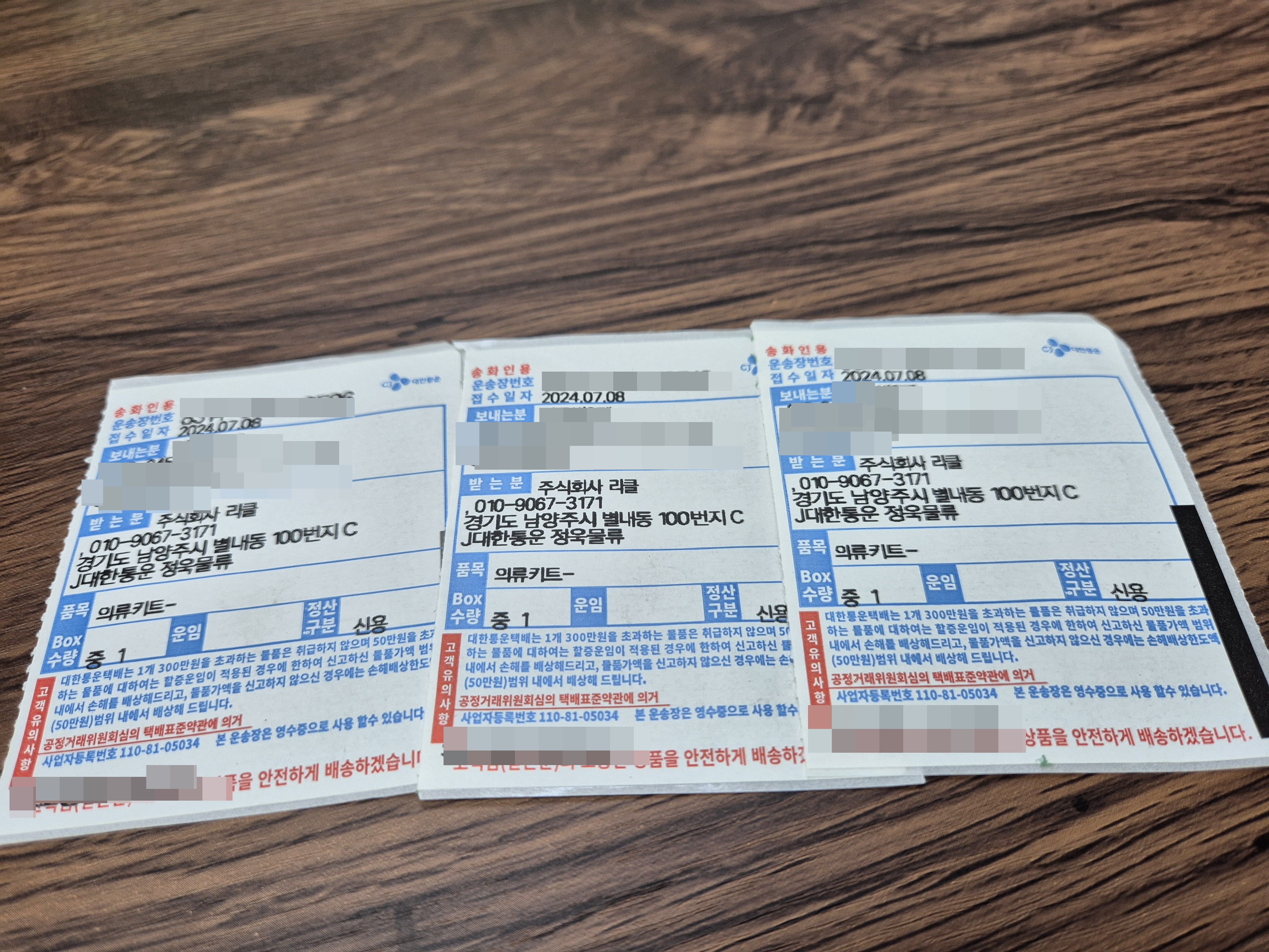 저는 3봉투를 보냈어서 송장도 3봉투가 있었습니다.