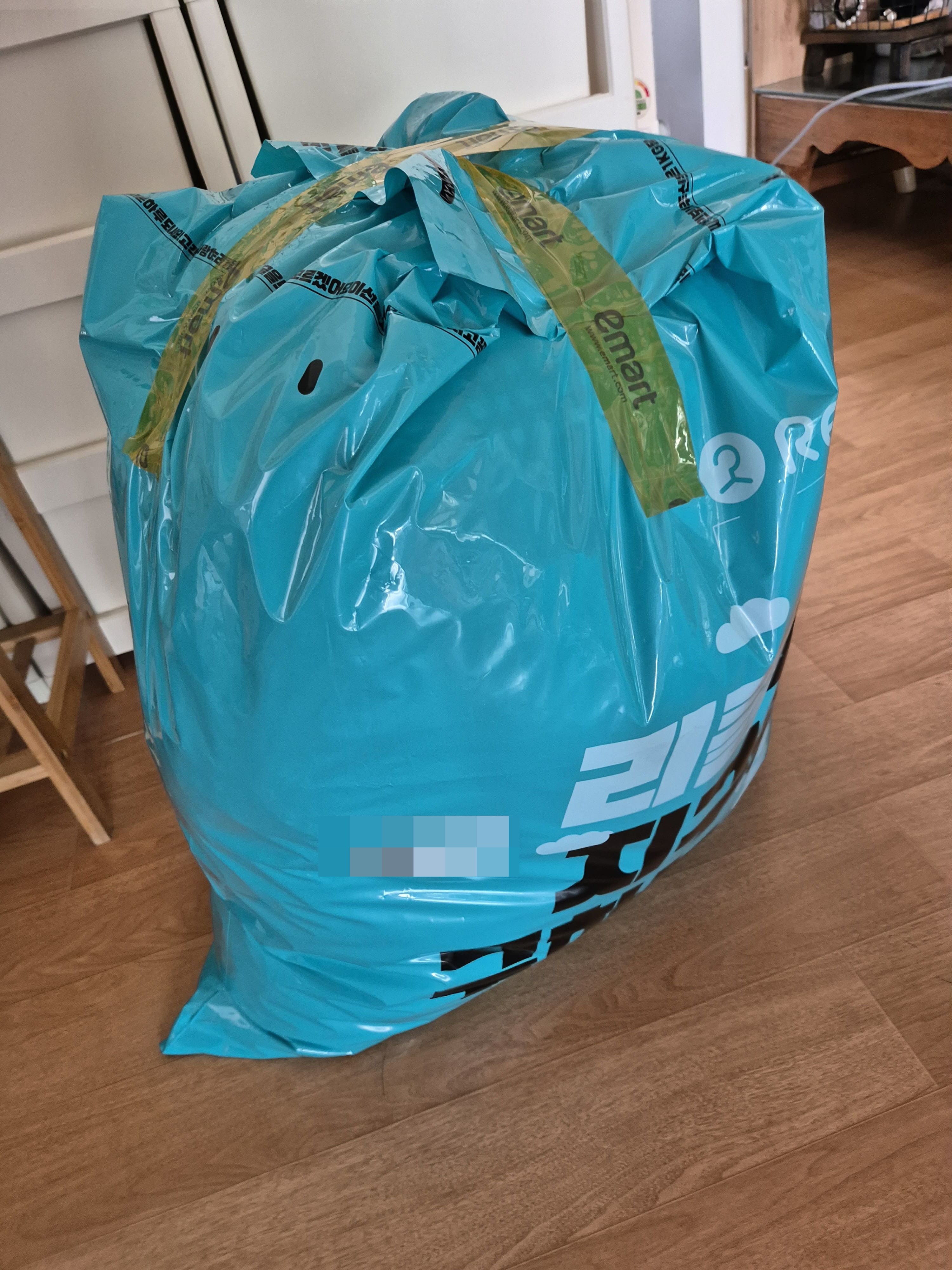 수거봉투 담긴 사진을 찍으려니 엄마가 쌓아놓은 헌옷이 답답하셨는지 저한테 말씀도 안하시고 바로 옷을 담아버려서