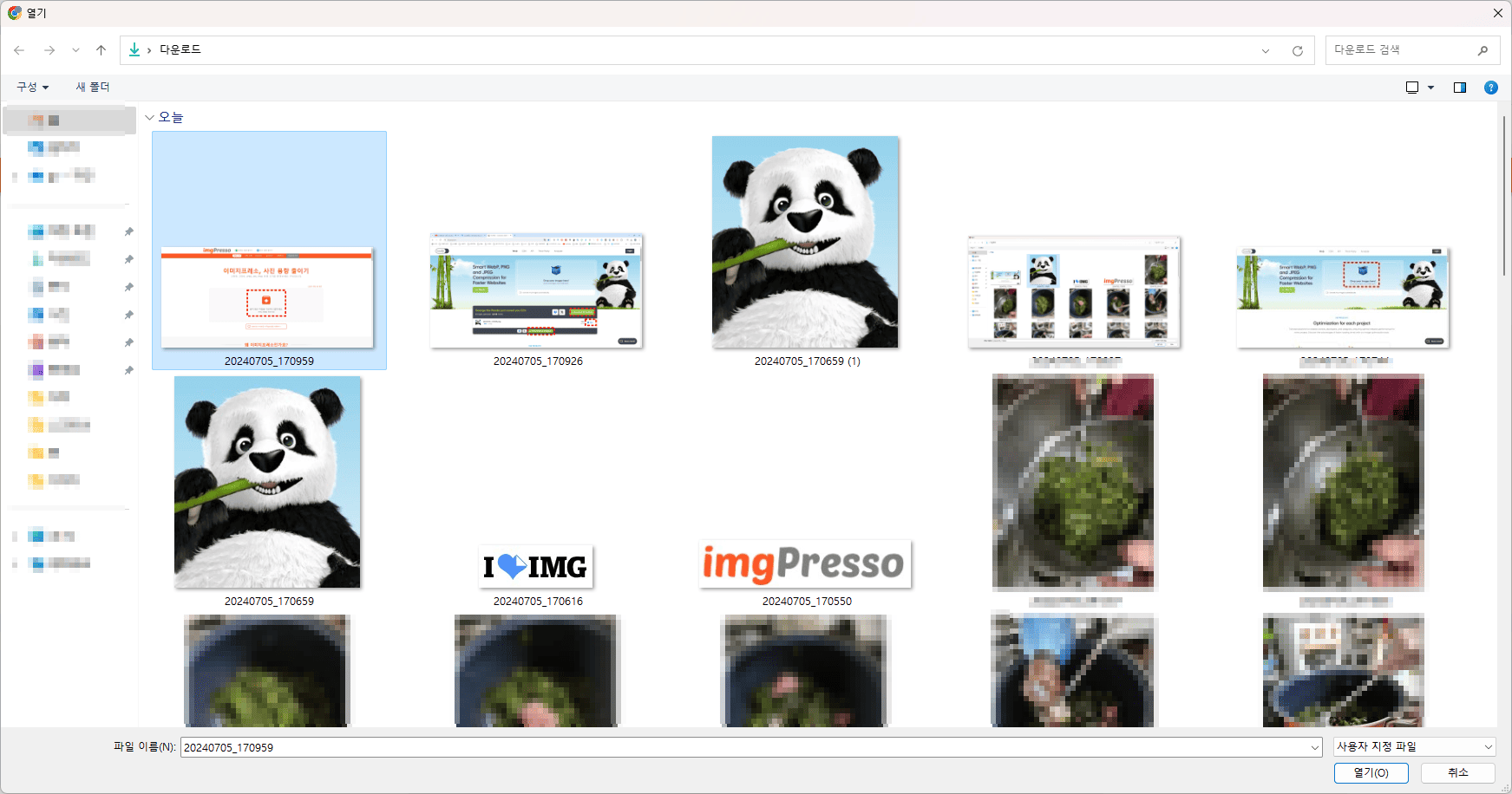 아이러브이미지에서도 타이니피엔지처럼 여러개의 사진 파일을 동시에 선택하여 용량을 줄일 수 있습니다.