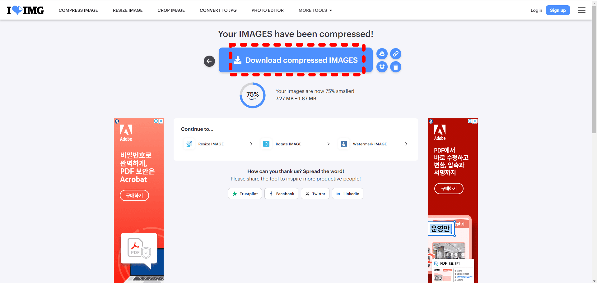 사진 압축이 다 되면 위와 같은 화면이 됩니다.