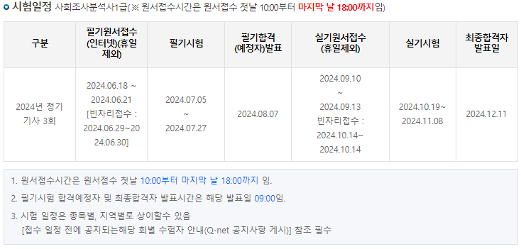 사회조사분석사 1급 시험은 매년 정해진 일정에 따라 실시되며, 필기시험과 실기시험의 일정은 큐넷(Q-net)에서 공지됩니다.