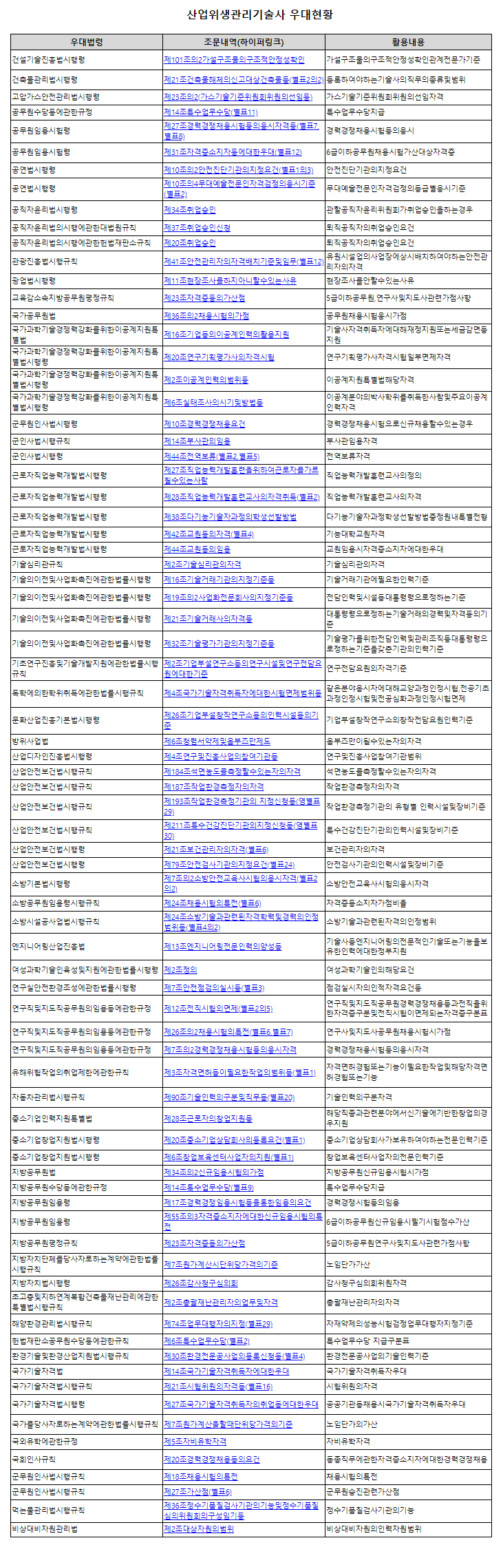 산업위생관리산업기사, 산업위생관리기사, 산업위생관리기술사의 차이점