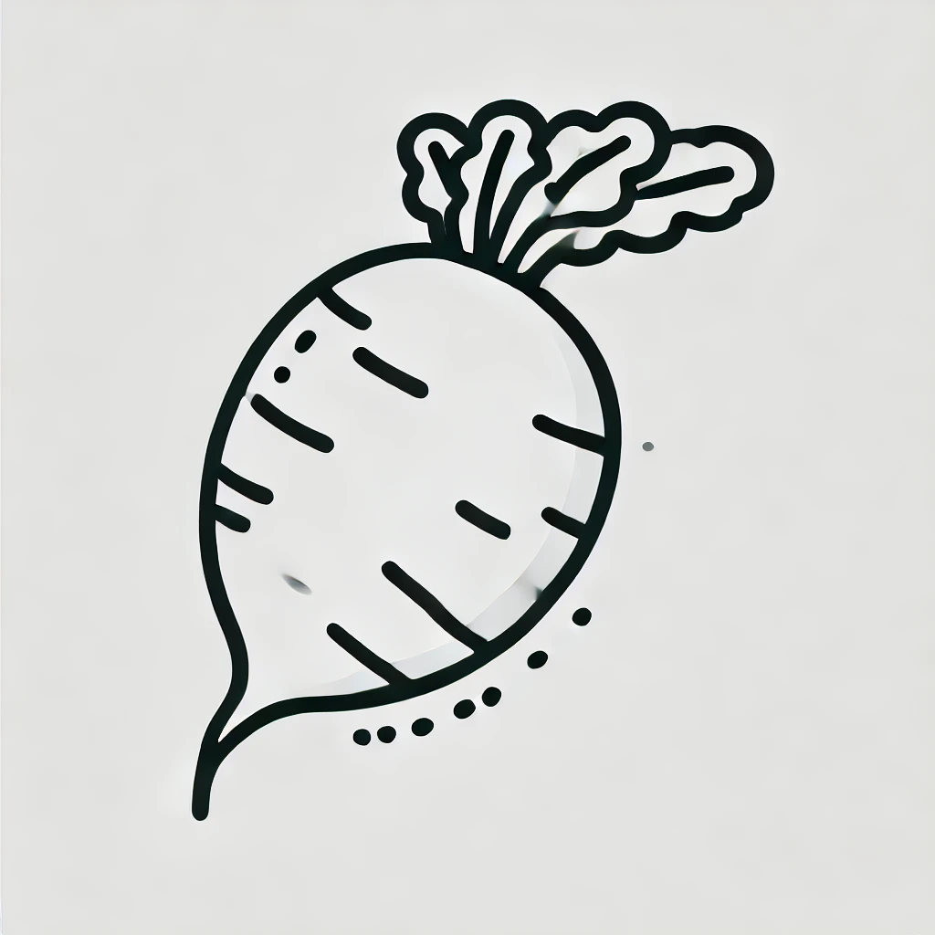 무 도안을 색칠할 때는 “이 무는 아삭아삭한 식감이 특징이에요.무의 하얀 색과 둥글둥글한 모양을 상상하면서 색칠해보세요. 무가 김치에 어떤 역할을 하는지 이야기해보세요.”라고 이야기해보세요.