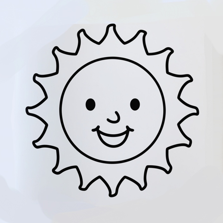 “이 태양은 지구에 빛과 열을 주는 큰 별이에요. 태양의 색깔과 모양을 상상하면서 색칠해보세요. 태양이 어떻게 우리를 따뜻하게 하고, 낮과 밤이 어떻게 생기는지 이야기해보면 좋겠죠?”라고 말해보세요.