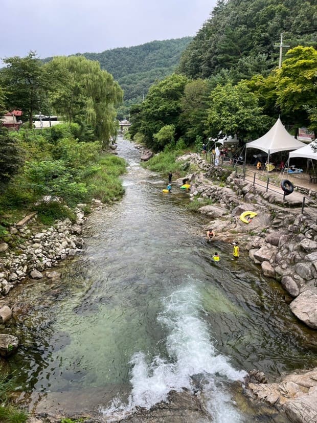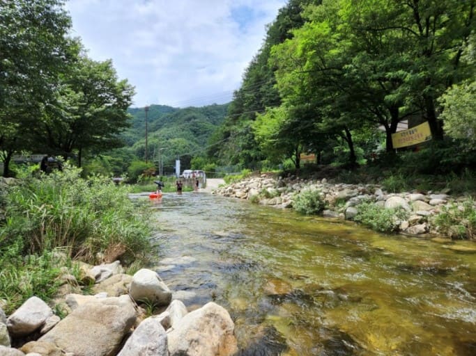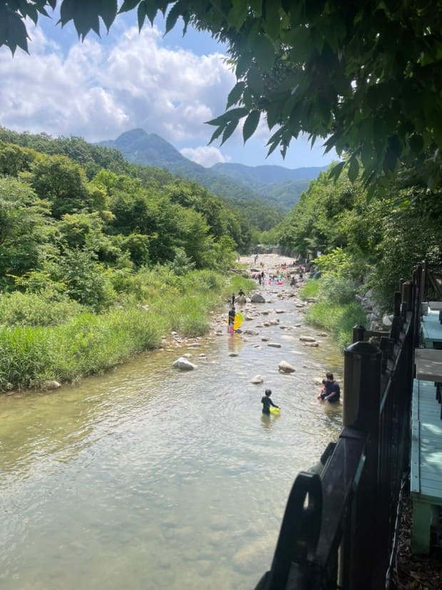 계곡 아래로 내려가셔서 물놀이 하시면 됩니다.