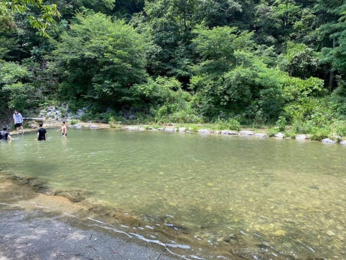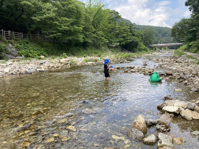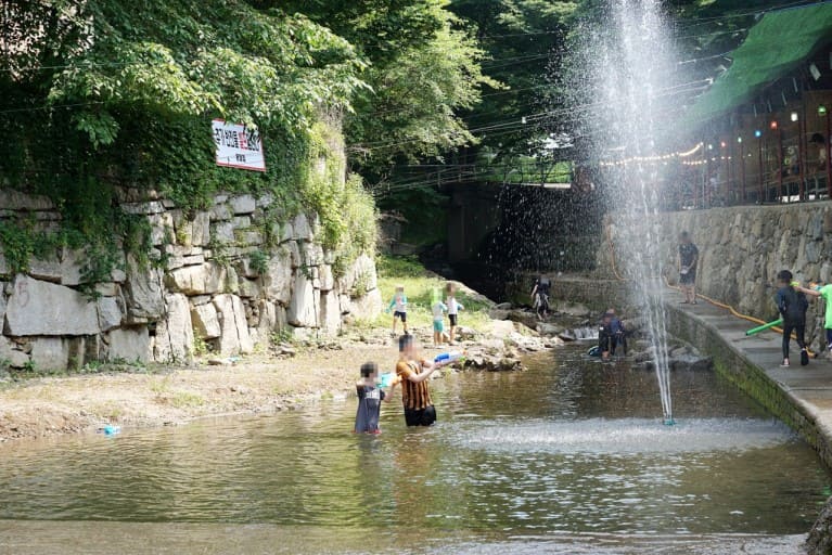 장마철 빼고는 수심이 깊지 않아서 아이들과 가족모두가 함께 물놀이하기 정말 좋습니다.