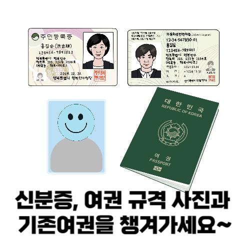찾아가실 때에는 준비물로 신분증과 기존의 여권, 6개월이내에 찍은 여권 규격에 맞는 사진을 가져갑니다.