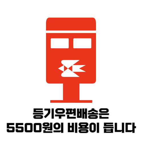 우편 배송은 등기 우편 배송료 5천5백원의 비용이 들어갑니다.