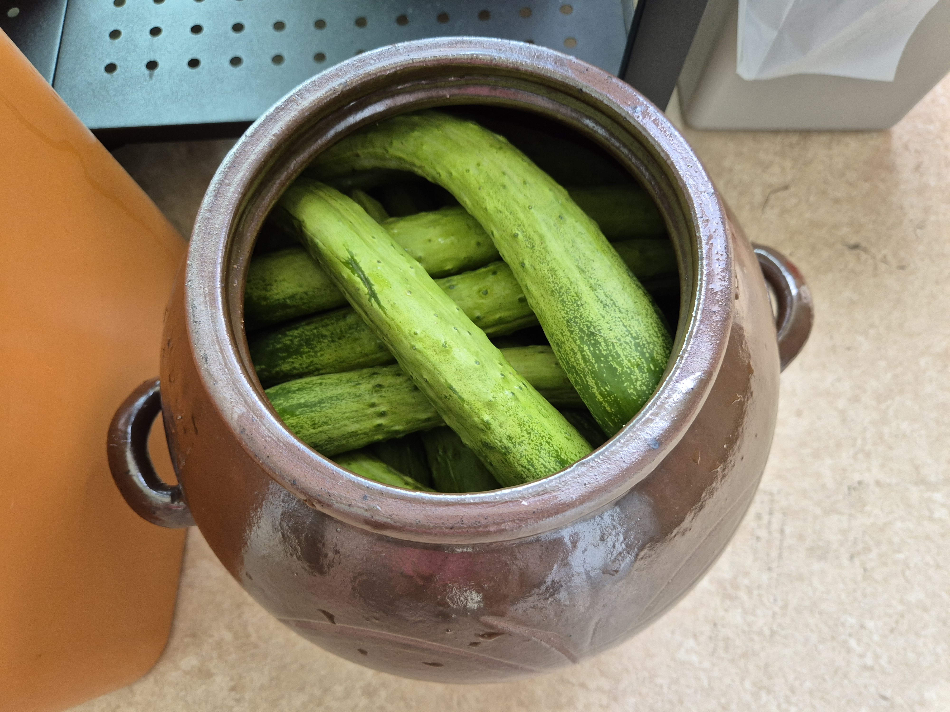 오이가 쪼그라드는 과정에서 오이의 물이 더 나올텐데요, 물이 너무 많아지니 물을 덜어내시고 오이도 작아졌으니 한 통에 합치거나 하시면서 살짝 정리(?)를 해주셔야 합니다.