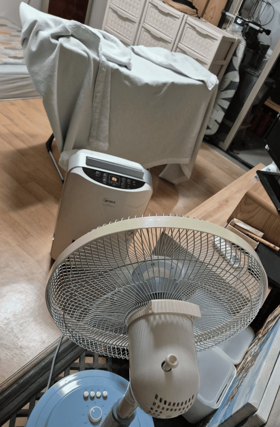 제습기가 없으면 에어컨과 선풍기를 활용하시면 되겠습니다.