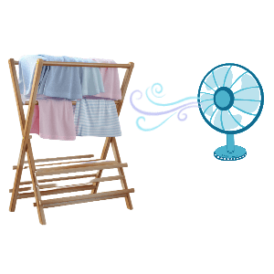 빨래가 마를 때까지 계속 선풍기 바름을 빨래에 쐬어줍니다.