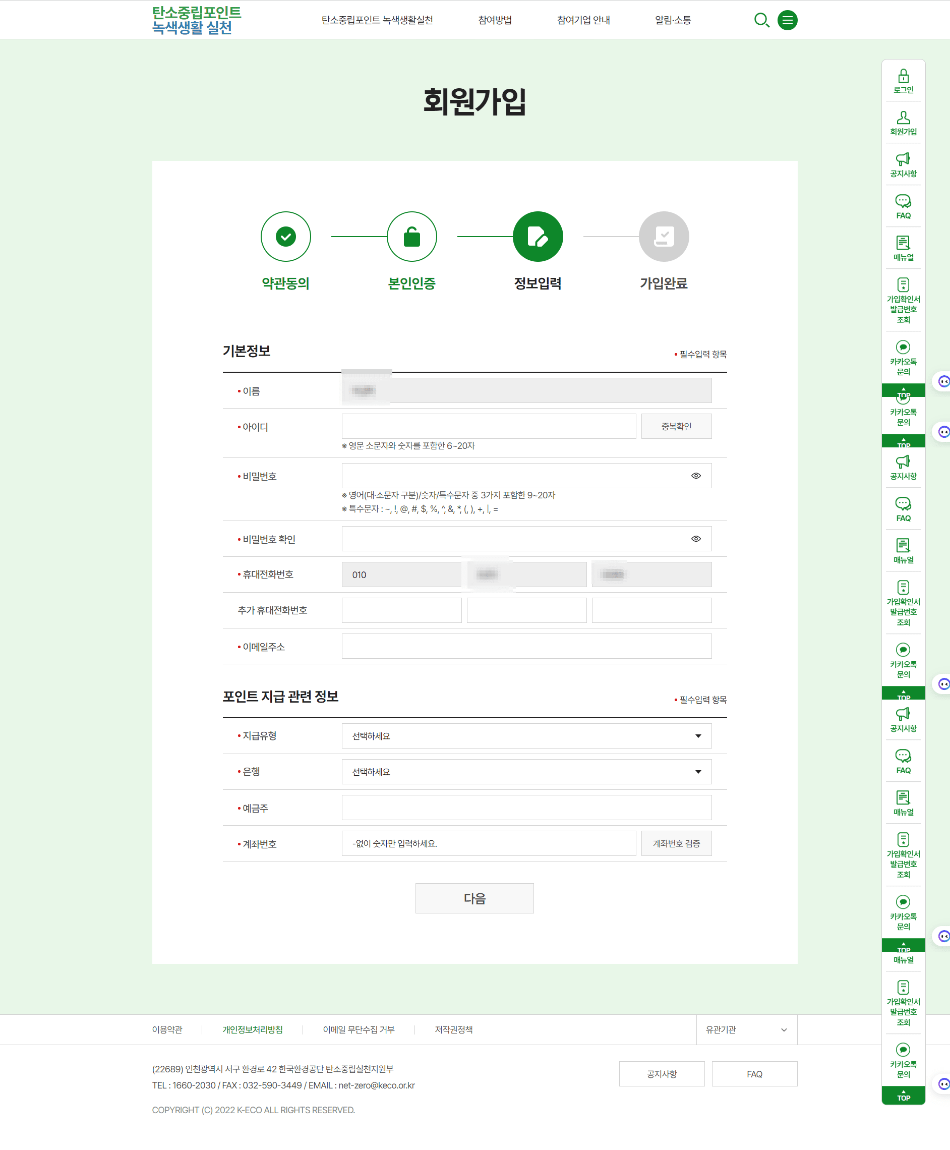본인인증이 끝나면 정보입력 페이지가 나옵니다.