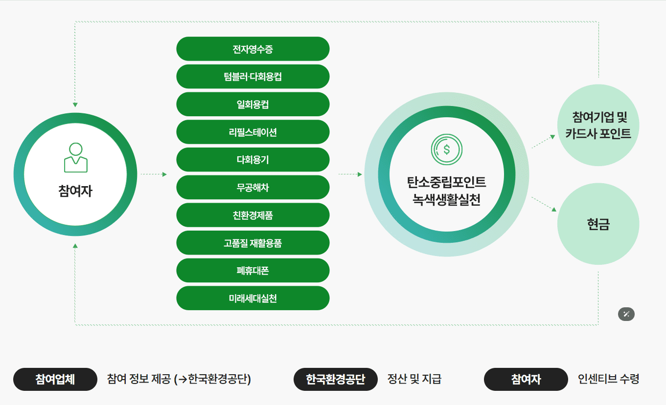 탄소중립실천포인트는 쉽고 간단하게 말하자면, 자연환경을 위해서 우리가 하는 실천 행위마다 포인트를 부여하는 제도입니다.