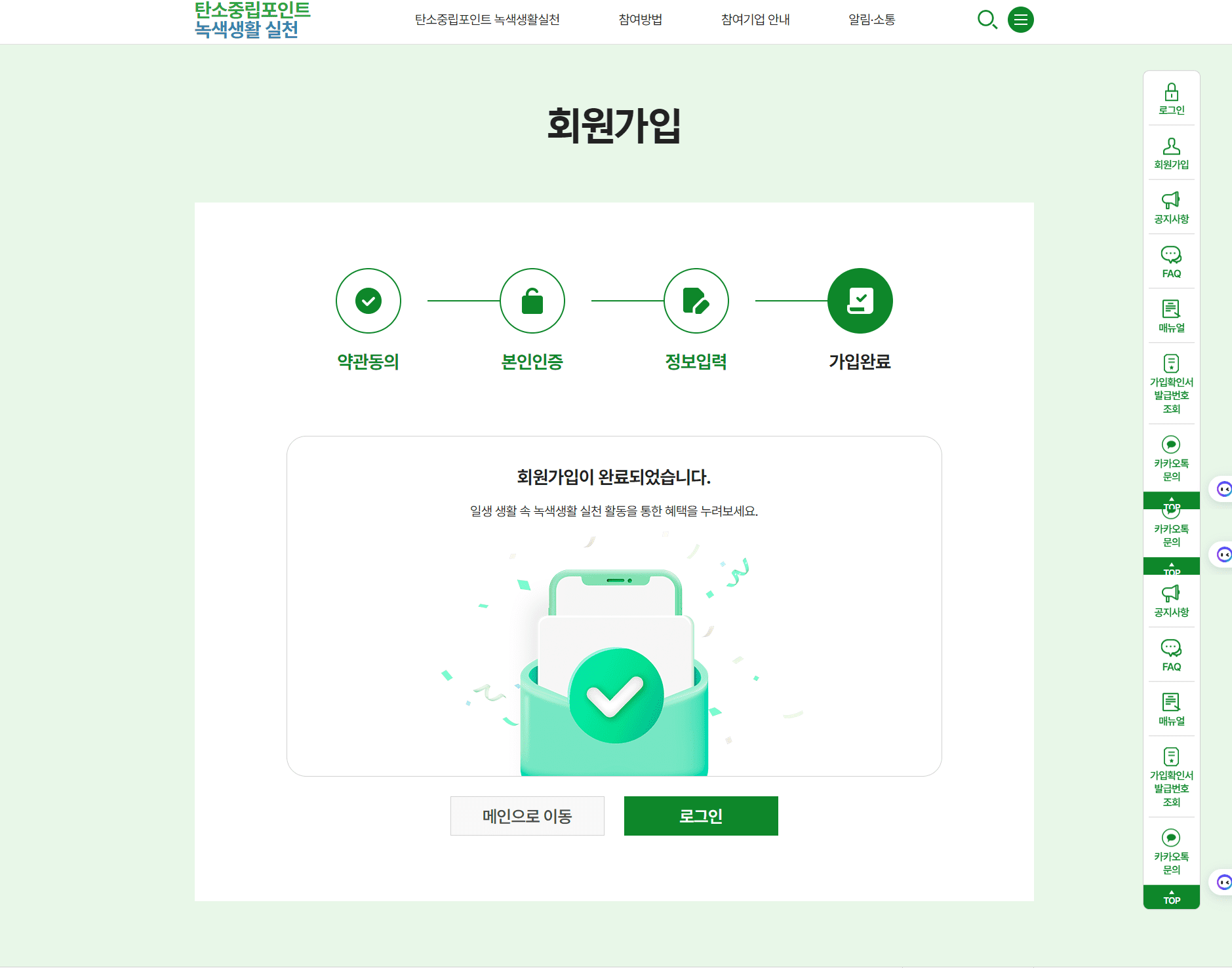 탄소중립 실천 포인트 가입하러 가기
