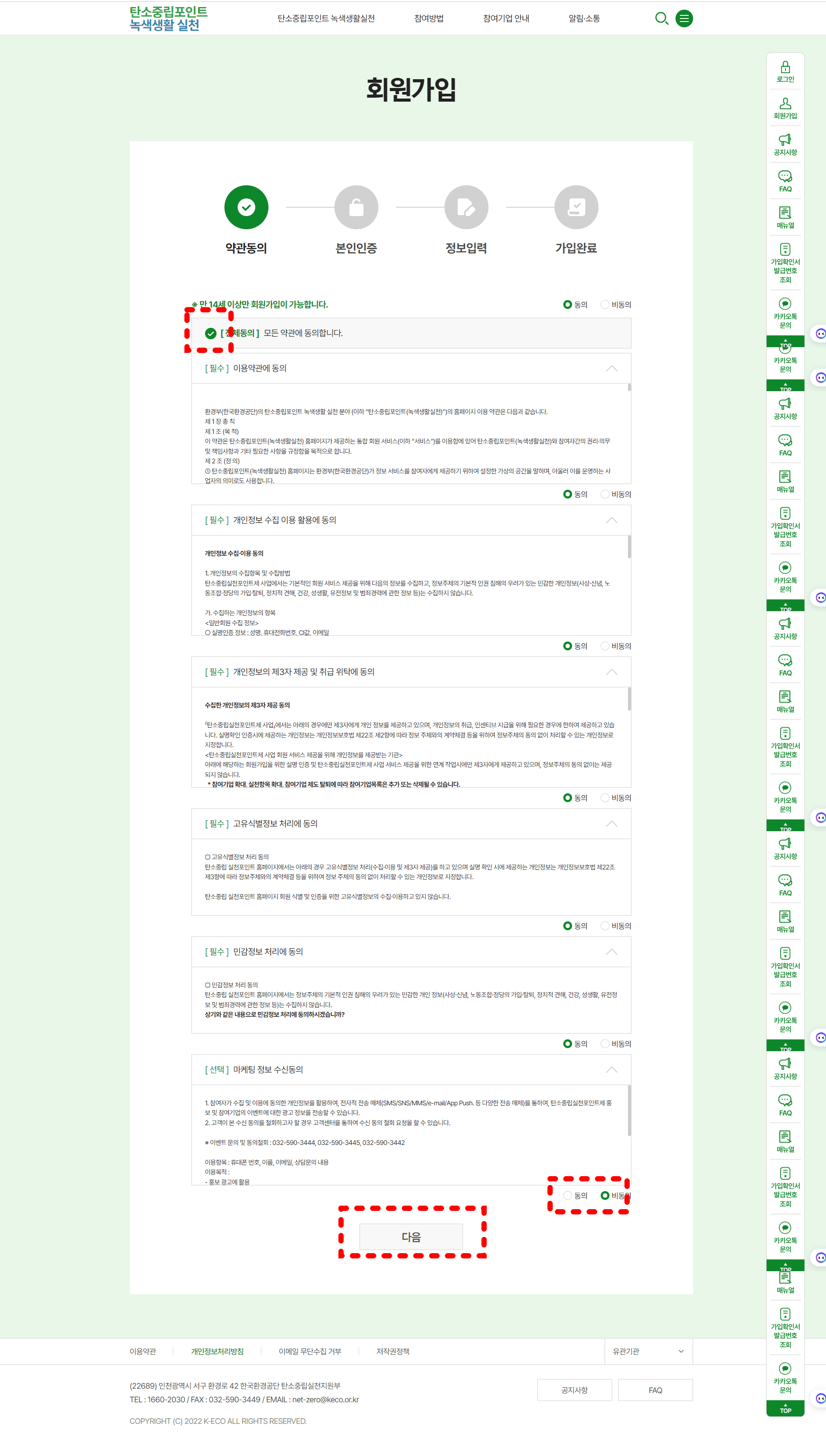 동의할 사항 동의하시고 다음 누르시면 됩니다.