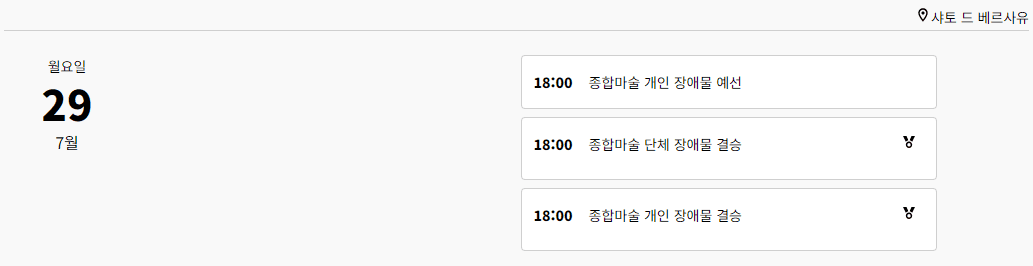 아래는 한국 출전 종목 및 일정이나 티켓구매정보를 알 수 있는 바로가기 버튼입니다.