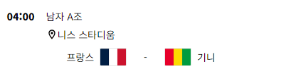 | 3일 토요일 | 00:00 남자 8강 - 리옹 스타디움 |