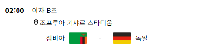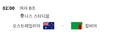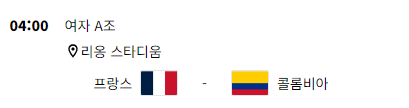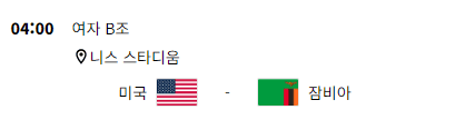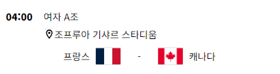 | 4일 일요일 | 00:00 여자 8강 리옹 스타디움 |