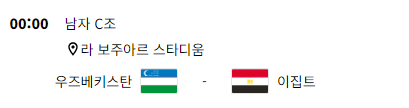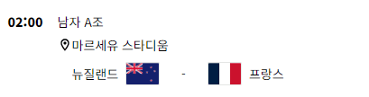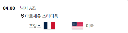 | 6일 화요일 | 01:00 남자 준결승 마르세유 스타디움 |
