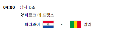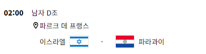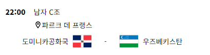 | 2일 금요일 | 22:00 남자 8강 - 파르크 데 프랭스 |