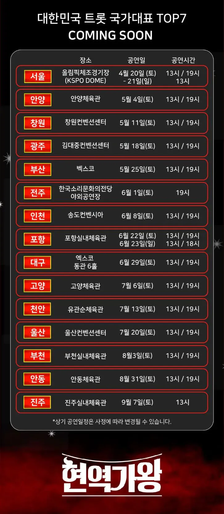 2024 현역가왕 전국투어 콘서트를 가실 예정이었다면 다른 정보를 보시기 전에 티켓부터 확보하시는 것이 좋겠습니다.
